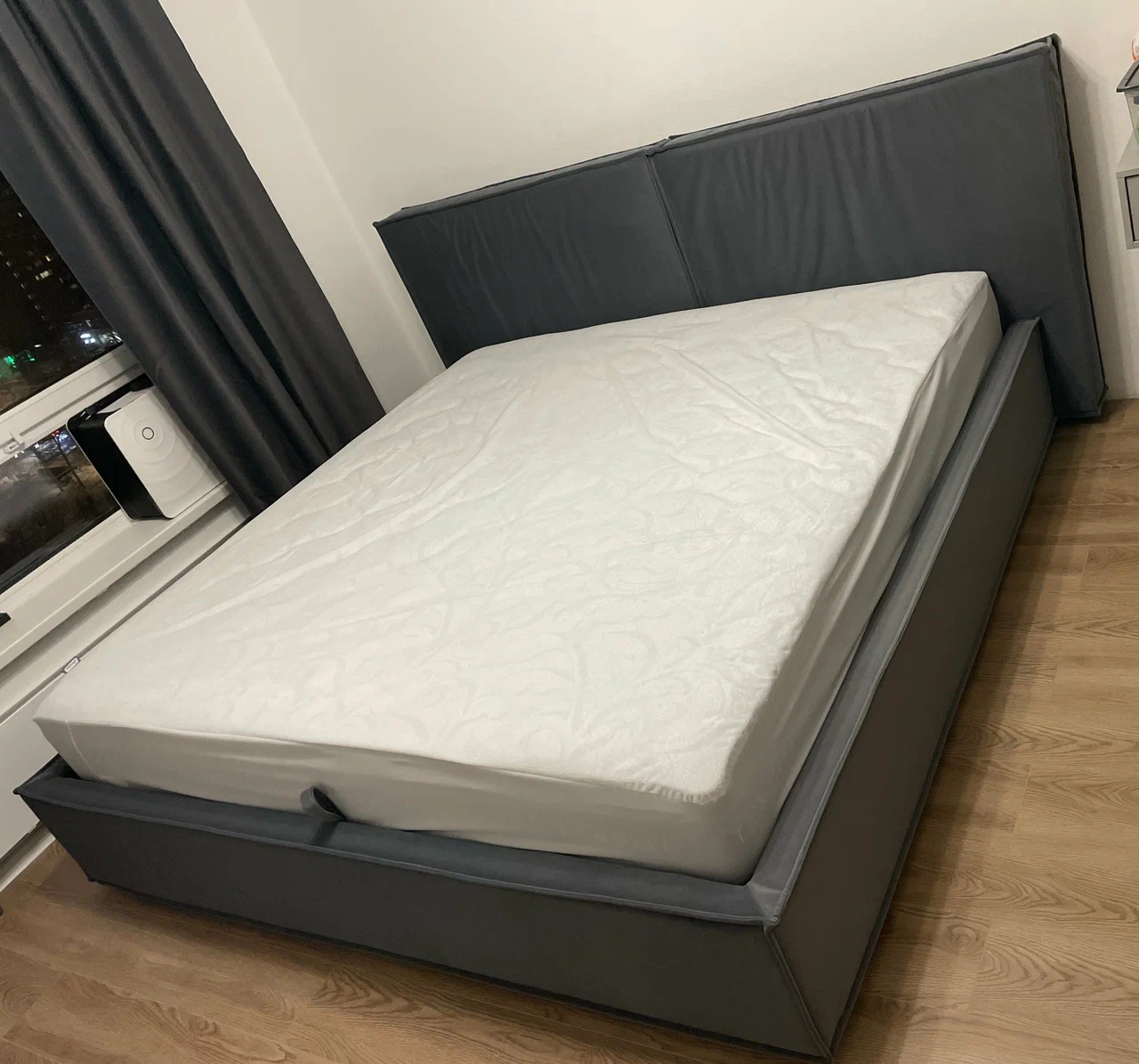 • Добрый день хочу поделиться своим впечатлением о кровати Вивьен 6.0 ткань Bravo Dark Grey очень долго искал себе такую кровать с большим мягким изголовьем и мягкими боковинами, оббегал всю Москву и есть с чем сравнивать. У многих производителей ткань абсолютно одинаковая и с этим проблем никаких нет, но качество сборки совершенно разная. В этой кровати понравилось что все сделано аккуратно как внутри так и снаружи. Ткань обивки на липучках. Все ровно и чётко приятно пользоваться, а вот у других производителей с этим беда. Поднимаешь механизм а там самая дешевая обивка внутрянки я так понимаю они это аргументируют тем что ,не видно же, скрепки от степлера как в диванах из 2000-Х полки мдф самые дешевые, при чем эти кровати плюс минус по цене одинаковые. В общем разочарования я просто придирчивый к мелочам и для меня это было важно. В этой же компании приобрел наматрасник и одеяло, сделано качественно приятно пользоваться. Из минусов не понравилось только что полки прогибаются, если перегружать это для людей которые используют кровать, как шкаф для барахла не используемого, можно было бы придумать поперечные для них в деньгах это не на много увеличит стоимости и времени изготовления, а людям будет приятно. Менеджеры по продажам реально помогают а не навязываются, это огромный плюс, рассказывают показывают, в других конторах попы даже не поднимут. Чтобы помочь. Еще положительный момент это плюс месяц бесплатного хранения, в моем случае я не успевал с ремонтом, поэтому доставку на месяц перенесли. Мастера собрали кровать очень быстро, мусор весь с собой забрали. В общем могу только пожелать данной компании процветания.